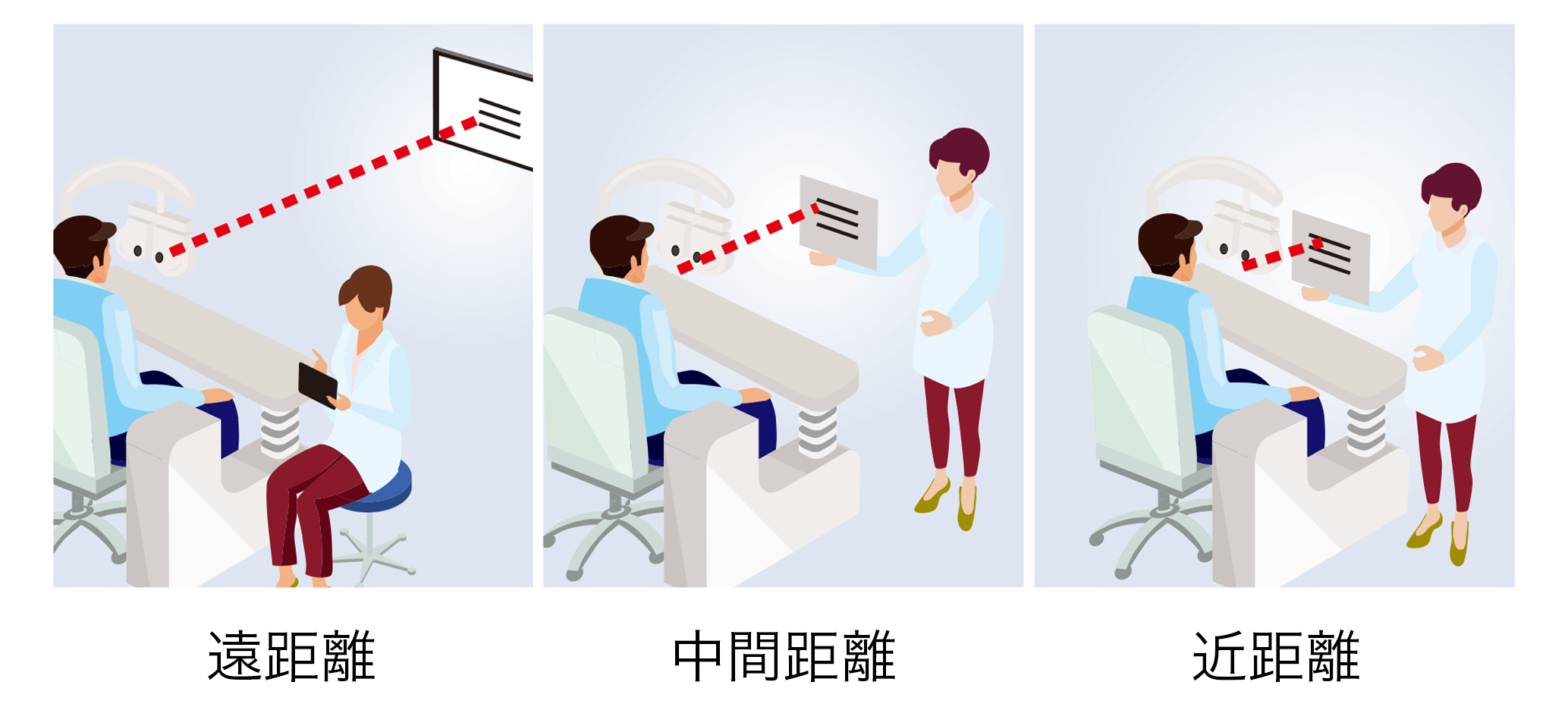 検査距離をシームレスに設定でき、スマートフォンを見る距離やPC作業をする距離などライフスタイルに合わせた視力検査を行えます。