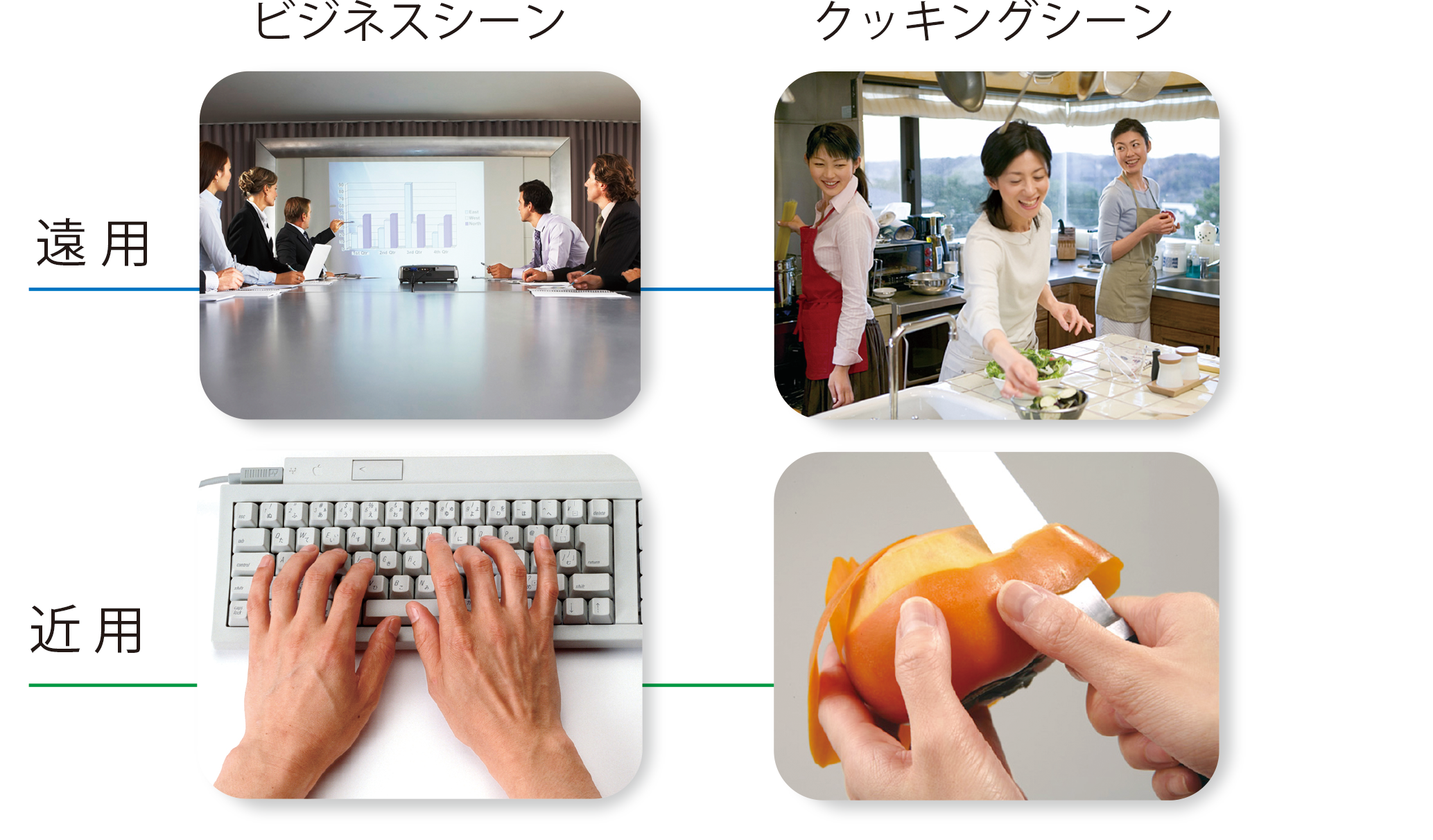 PC-50 seriesは遠用の見え方確認ができる静止画表示機能を搭載しています。さらにKB-50Sとの組み合わせにより、近用の静止画表示が可能です。様々な風景シーンを利用した遠近の見え方を相互確認でき、累進レンズ選びをサポートします。また、動画を使用した見え方や立体視の疑似体験、深視力テストの疑似体験など視標表示が充実しています。